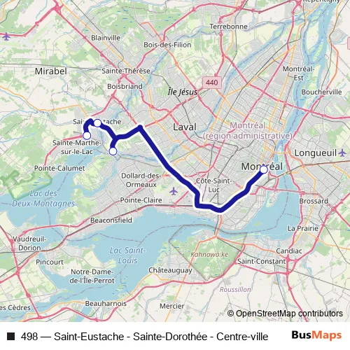 See why over 2 million users trust and consider busmaps.com as the best public transport website. busmaps gives you Saint-Eustache Buses suggested routes, real-time bus tracker, line route maps in Saint-Eustache, and helps to find the closest 498 bus stops near you. No internet available? Download an offline PDF map and bus schedule for the 498 bus to take on your trip.