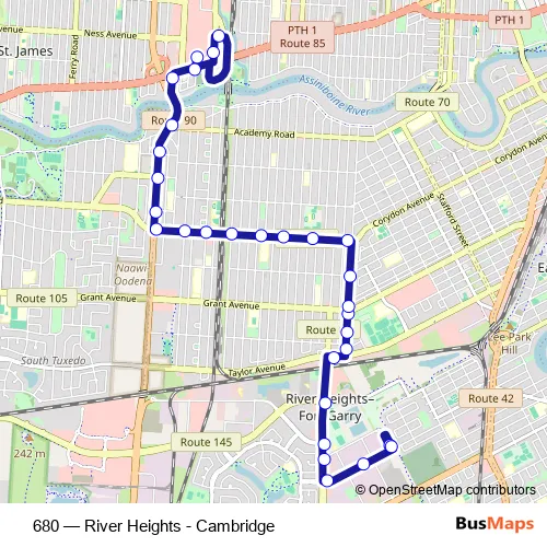 Bus 680 - River Heights - Cambridge in Winnipeg: Stops & Timetable