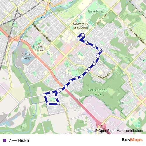 See why over 2 million users trust and consider busmaps.com as the best public transport website. busmaps gives you Guelph Buses suggested routes, real-time bus tracker, line route maps in Guelph, and helps to find the closest 7 bus stops near you. No internet available? Download an offline PDF map and bus schedule for the 7 bus to take on your trip.