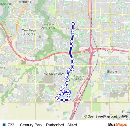 See why over 2 million users trust and consider busmaps.com as the best public transport website. busmaps gives you Edmonton Buses suggested routes, real-time bus tracker, line route maps in Edmonton, and helps to find the closest 722 bus stops near you. No internet available? Download an offline PDF map and bus schedule for the 722 bus to take on your trip.