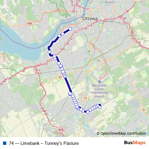 See why over 2 million users trust and consider busmaps.com as the best public transport website. busmaps gives you Ottawa Buses suggested routes, real-time bus tracker, line route maps in Ottawa, and helps to find the closest 74 bus stops near you. No internet available? Download an offline PDF map and bus schedule for the 74 bus to take on your trip.
