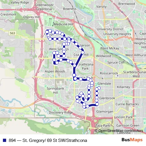 894 (St. Gregory/ 69 St SW/Strathcona) Bus in Calgary