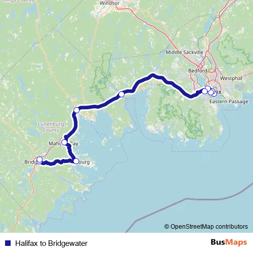 See why over 2 million users trust and consider busmaps.com as the best public transport website. busmaps gives you Halifax Buses suggested routes, real-time bus tracker, line route maps in Halifax, and helps to find the closest Halifax to Bridgewater bus stops near you. No internet available? Download an offline PDF map and bus schedule for the Halifax to Bridgewater bus to take on your trip.