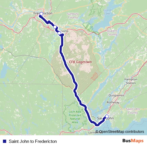 Saint John to Fredericton bus Route Map