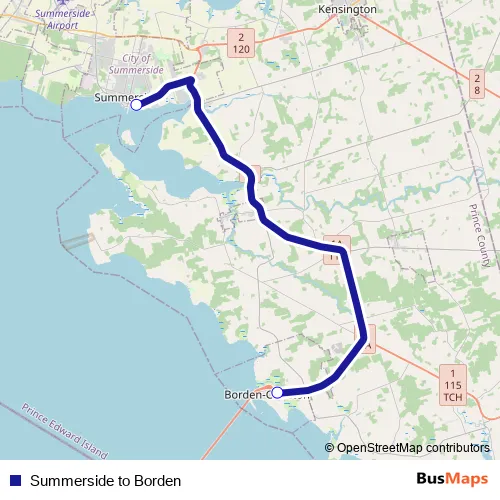 The first stop of the Summerside to Borden bus route is Summerside and the last stop is Borden. Summerside to Borden (Summerside to Borden) is operational during tous les jours.
