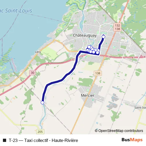 Bus T-23 - Taxi collectif - Haute-Rivière in Mercier: Stops & Timetable