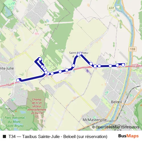 Click here to view the nearest T34 - Taxibus Sainte-Julie - Beloeil (sur réservation) bus stop.