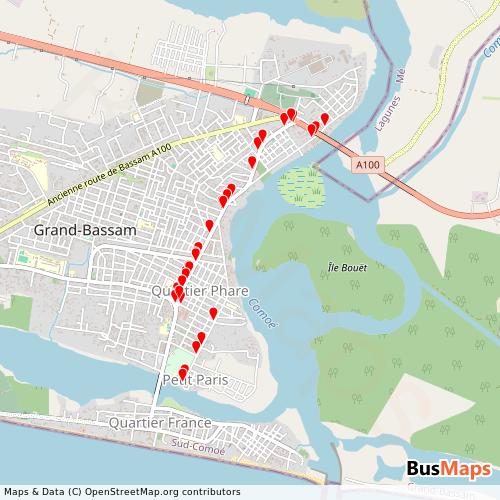 Woro-woro de Bassam, based in Grand-Bassam, Comoe District, Côte d'Ivoire, provides local public transport service, including Bus. Our platform provides detailed and up-to-date information on routes, schedules, stops, and arrivals for all services operated by Woro-woro de Bassam. Whether you're planning your daily commute or exploring the city, our tools help you find the nearest stop and the best route to your destination.