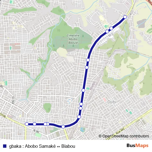 gbaka : Abobo Samaké ↔ Biabou bus Route Map