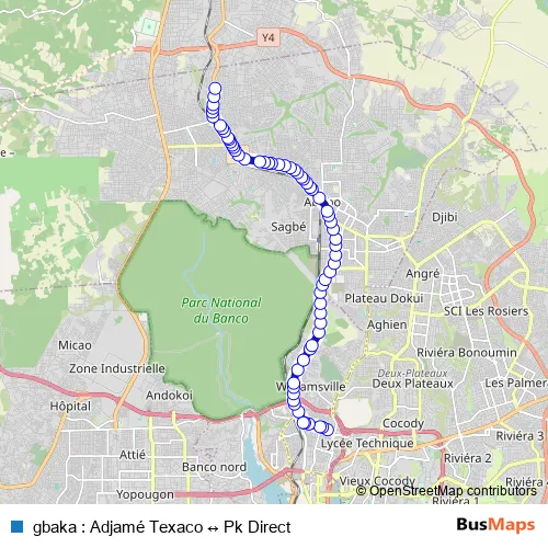 gbaka : Adjamé Texaco ↔ Pk Direct bus Route Map