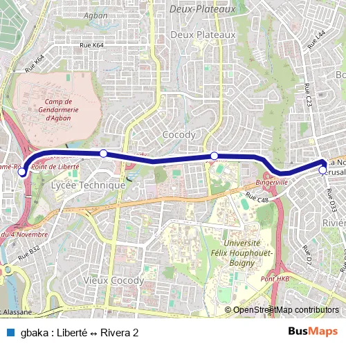 gbaka : Liberté ↔ Rivera 2 bus Route Map