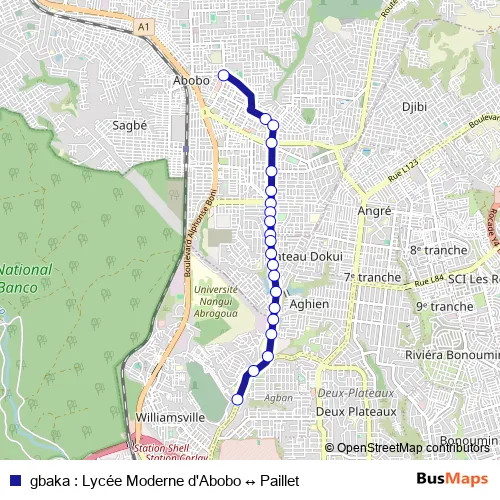 gbaka : Lycée Moderne d'Abobo ↔ Paillet bus Route Map