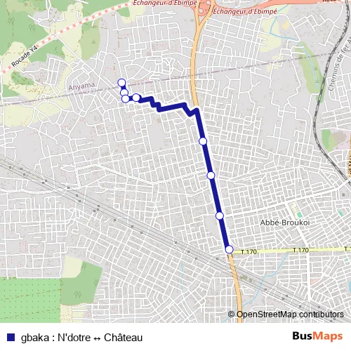 See why over 2 million users trust and consider busmaps.com as the best public transport website. busmaps gives you Abidjan Buses suggested routes, real-time bus tracker, line route maps in Abidjan, and helps to find the closest gbaka : N'dotre ↔ Château bus stops near you. No internet available? Download an offline PDF map and bus schedule for the gbaka : N'dotre ↔ Château bus to take on your trip.
