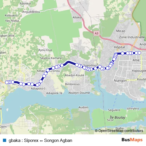 Additional information: gbaka : Siporex ↔ Songon Agban has 47 stops and the total trip duration