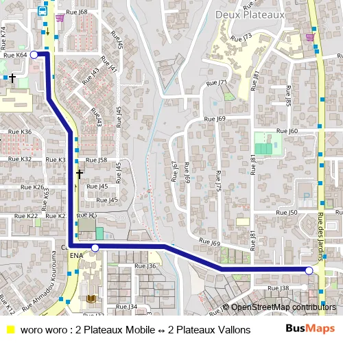 woro woro : 2 Plateaux Mobile ↔ 2 Plateaux Vallons bus Route Map