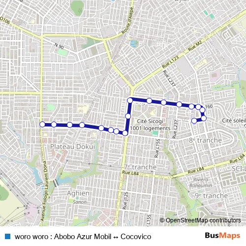 Click here to view the nearest woro woro : Abobo Azur Mobil ↔ Cocovico bus stop.