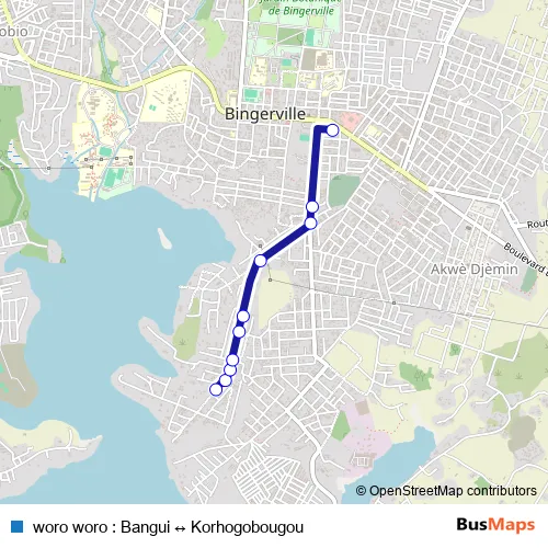 See why over 2 million users trust and consider busmaps.com as the best public transport website. busmaps gives you Abidjan Buses suggested routes, real-time bus tracker, line route maps in Abidjan, and helps to find the closest woro woro : Bangui ↔ Korhogobougou bus stops near you. No internet available? Download an offline PDF map and bus schedule for the woro woro : Bangui ↔ Korhogobougou bus to take on your trip.