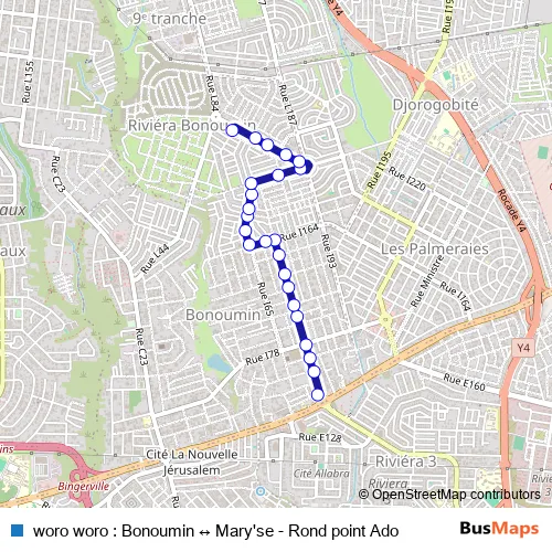 Bus woro woro : Bonoumin ↔ Mary'se - Rond point Ado in Abidjan: Stops & Timetable