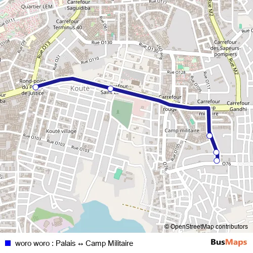 woro woro : Palais ↔ Camp Militaire bus Route Map