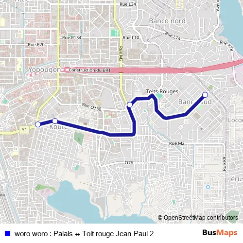 Woro-woro de Yopougon woro woro : Palais ↔ Toit rouge Jean-Paul 2 bus Route Map