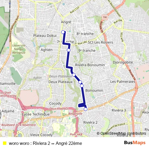 woro woro : Riviera 2 ↔ Angré 22ème bus Route Map