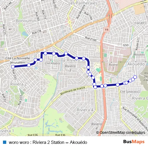 woro woro : Riviera 2 Station ↔ Akouédo bus Route Map