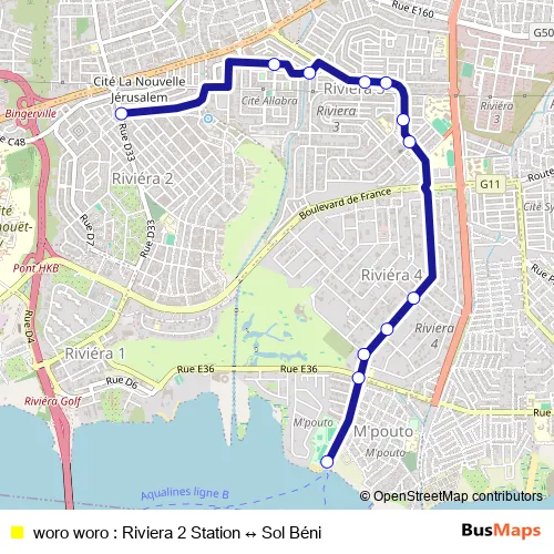 Similar Routes & Alternatives to woro woro : Riviera 2 Station ↔ Sol Béni