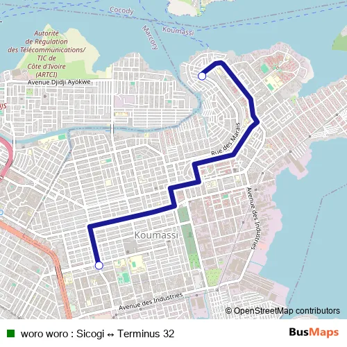 See why over 2 million users trust and consider busmaps.com as the best public transport website. busmaps gives you Abidjan Buses suggested routes, real-time bus tracker, line route maps in Abidjan, and helps to find the closest woro woro : Sicogi ↔ Terminus 32 bus stops near you. No internet available? Download an offline PDF map and bus schedule for the woro woro : Sicogi ↔ Terminus 32 bus to take on your trip.