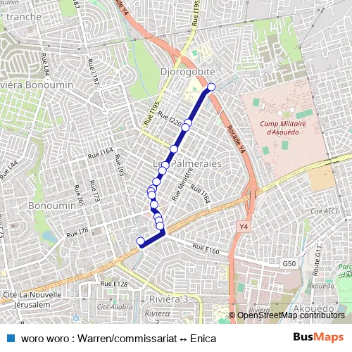 Woro-woro de Cocody woro woro : Warren/commissariat ↔ Enica bus Route Map