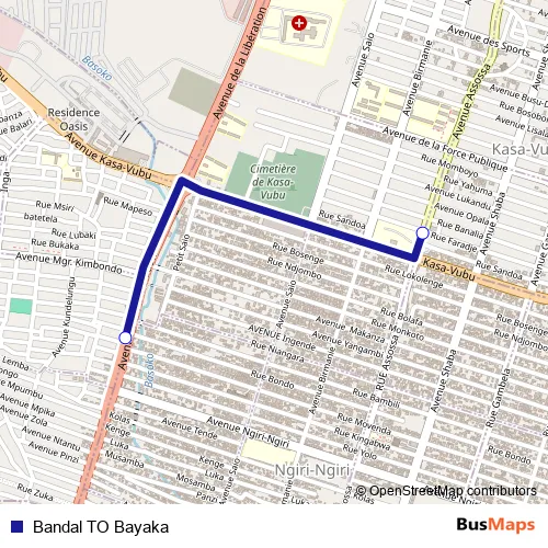 See why over 2 million users trust and consider busmaps.com as the best public transport website. busmaps gives you Kinshasa Buses suggested routes, real-time bus tracker, line route maps in Kinshasa, and helps to find the closest Bandal TO Bayaka bus stops near you. No internet available? Download an offline PDF map and bus schedule for the Bandal TO Bayaka bus to take on your trip.
