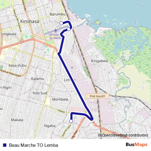 See why over 2 million users trust and consider busmaps.com as the best public transport website. busmaps gives you Kinshasa Buses suggested routes, real-time bus tracker, line route maps in Kinshasa, and helps to find the closest Beau Marche TO Lemba bus stops near you. No internet available? Download an offline PDF map and bus schedule for the Beau Marche TO Lemba bus to take on your trip.