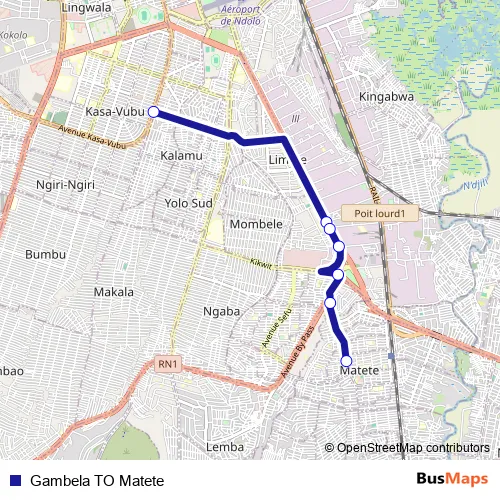 See why over 2 million users trust and consider busmaps.com as the best public transport website. busmaps gives you Kinshasa Buses suggested routes, real-time bus tracker, line route maps in Kinshasa, and helps to find the closest Gambela TO Matete bus stops near you. No internet available? Download an offline PDF map and bus schedule for the Gambela TO Matete bus to take on your trip.