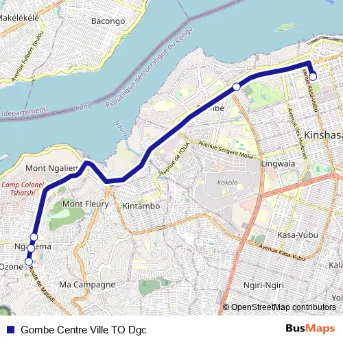 See why over 2 million users trust and consider busmaps.com as the best public transport website. busmaps gives you Kinshasa Buses suggested routes, real-time bus tracker, line route maps in Kinshasa, and helps to find the closest Gombe Centre Ville TO Dgc bus stops near you. No internet available? Download an offline PDF map and bus schedule for the Gombe Centre Ville TO Dgc bus to take on your trip.