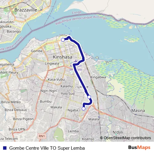 Gombe Centre Ville TO Super Lemba bus Route Map