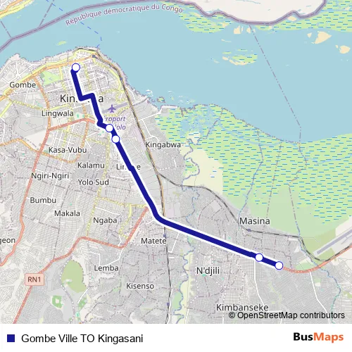 Gombe Ville TO Kingasani bus Route Map
