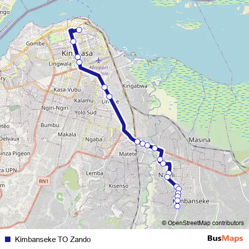See why over 2 million users trust and consider busmaps.com as the best public transport website. busmaps gives you Kinshasa Buses suggested routes, real-time bus tracker, line route maps in Kinshasa, and helps to find the closest Kimbanseke TO Zando bus stops near you. No internet available? Download an offline PDF map and bus schedule for the Kimbanseke TO Zando bus to take on your trip.