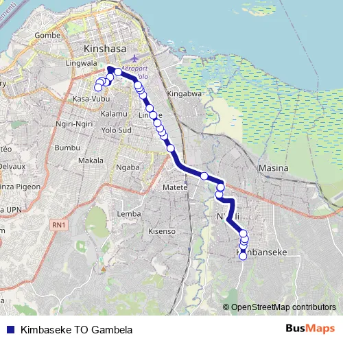 Bus Kimbaseke TO Gambela in Kinshasa: Stops & Timetable
