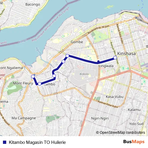 Bus Kitambo Magasin TO Huilerie in Kinshasa: Stops & Timetable