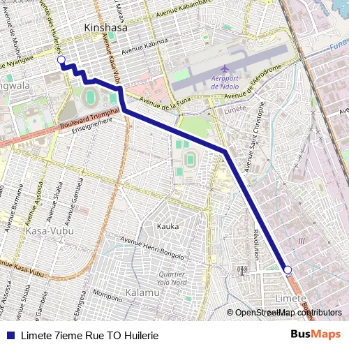 Limete 7ieme Rue TO Huilerie bus Route Map