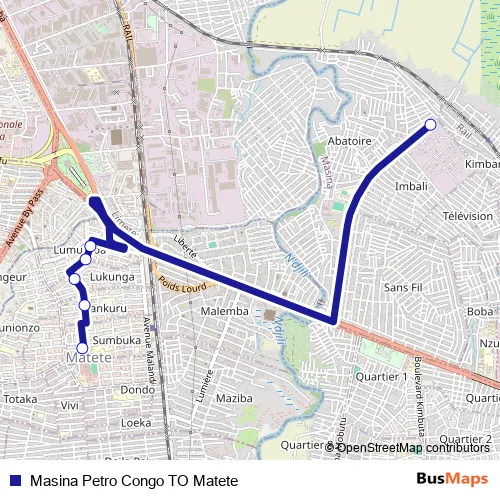 Masina Petro Congo TO Matete bus Route Map