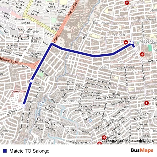 See why over 2 million users trust and consider busmaps.com as the best public transport website. busmaps gives you Kinshasa Buses suggested routes, real-time bus tracker, line route maps in Kinshasa, and helps to find the closest Matete TO Salongo bus stops near you. No internet available? Download an offline PDF map and bus schedule for the Matete TO Salongo bus to take on your trip.