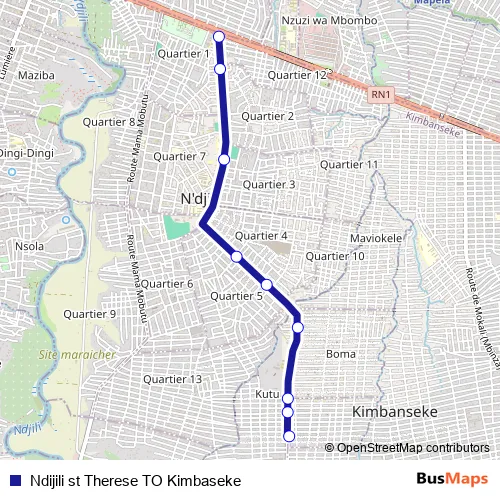 Ndijili st Therese TO Kimbaseke bus Route Map