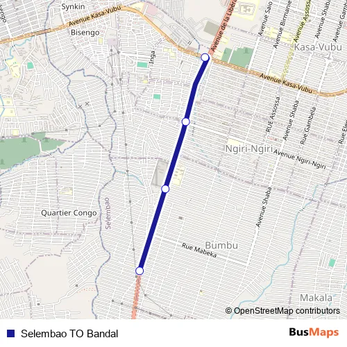 See why over 2 million users trust and consider busmaps.com as the best public transport website. busmaps gives you Kinshasa Buses suggested routes, real-time bus tracker, line route maps in Kinshasa, and helps to find the closest Selembao TO Bandal bus stops near you. No internet available? Download an offline PDF map and bus schedule for the Selembao TO Bandal bus to take on your trip.