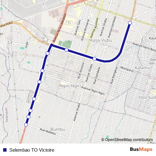 See why over 2 million users trust and consider busmaps.com as the best public transport website. busmaps gives you Kinshasa Buses suggested routes, real-time bus tracker, line route maps in Kinshasa, and helps to find the closest Selembao TO Victoire bus stops near you. No internet available? Download an offline PDF map and bus schedule for the Selembao TO Victoire bus to take on your trip.