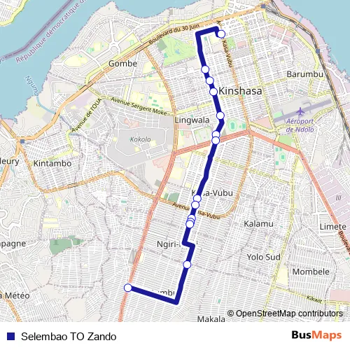 See why over 2 million users trust and consider busmaps.com as the best public transport website. busmaps gives you Kinshasa Buses suggested routes, real-time bus tracker, line route maps in Kinshasa, and helps to find the closest Selembao TO Zando bus stops near you. No internet available? Download an offline PDF map and bus schedule for the Selembao TO Zando bus to take on your trip.
