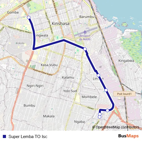 See why over 2 million users trust and consider busmaps.com as the best public transport website. busmaps gives you Kinshasa Buses suggested routes, real-time bus tracker, line route maps in Kinshasa, and helps to find the closest Super Lemba TO Isc bus stops near you. No internet available? Download an offline PDF map and bus schedule for the Super Lemba TO Isc bus to take on your trip.