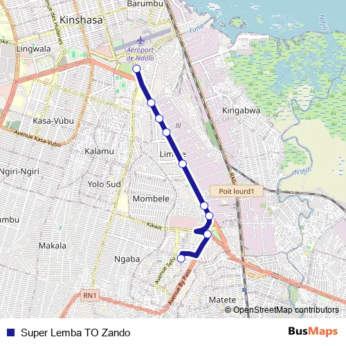 Additional information: Super Lemba TO Zando has 9 stops and the total trip duration for this route is approximately 18 minutes.