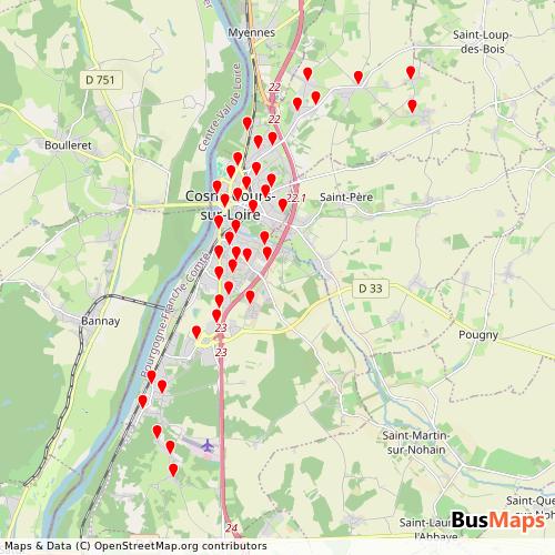 Transit map showing donnees-du-reseau-de-bus-papillon routes and stops in France