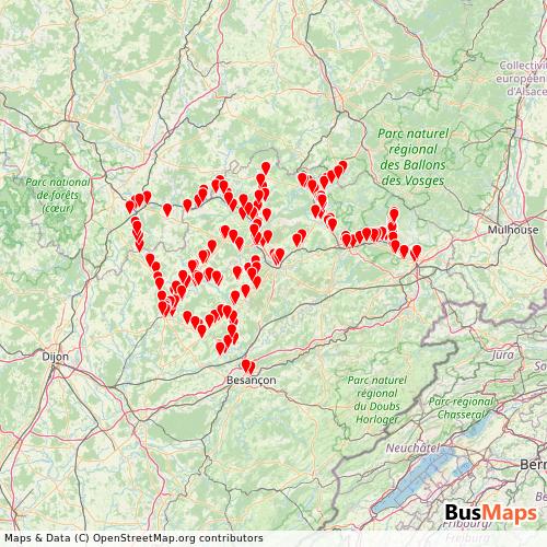 Transit map showing donneesdur-haute-saone routes and stops in France
