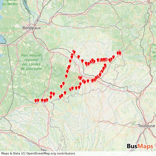 Cars Régionaux 47 - Lot et Garonne operates in the following cities: Agen, Villeneuve-sur-Lot, Casteljaloux.